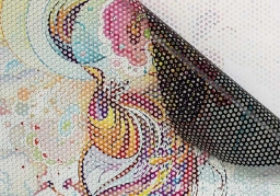 Во-первых, материал имеет нанесённый на поверхность с одной стороны принт и прозрачный фон. Благодаря этому обеспечивается уникальный визуальный эффект.