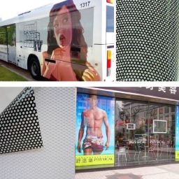 Благодаря внешней подсветке (направленный источник света) можно разглядеть информацию в тёмное время суток. Благодаря этому при оформлении витрин и транспорта всё чаще используют именно перфорированную плёнку.