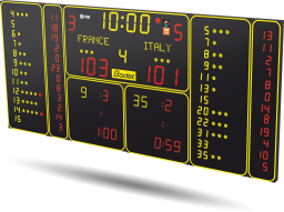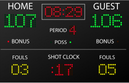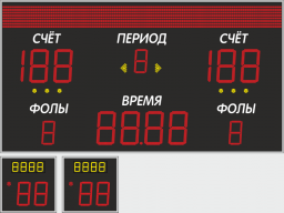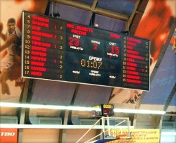 На электронных табло для баскетбола, отображаются игровое время, счет обеих команд, номер периода – все это базовые показатели спортивного табло. Дополнительная информация может быть различной: тайм-ауты, фолы, наименования команд, тексты в бегущей строке и т.д.