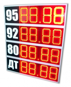LED табло на автозаправочных станциях (АЗС) используется для информирования покупателей о стоимости топлива, а также о наличии дополнительных услуг АЗС, таких как манимаркет, место для отдыха, сервис авто и т.д.