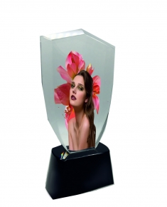 UV-печать позволяет воплотить на стекле практически любую Вашу задумку. Преимуществом оформления стеклянной стеллы UV- печатью, будет - возможность печати более контрастного и яркого изображения, так же есть возможность нанесения подложки белым цветом, что значительно выделит изображение на передний план, утратив прозрачность.